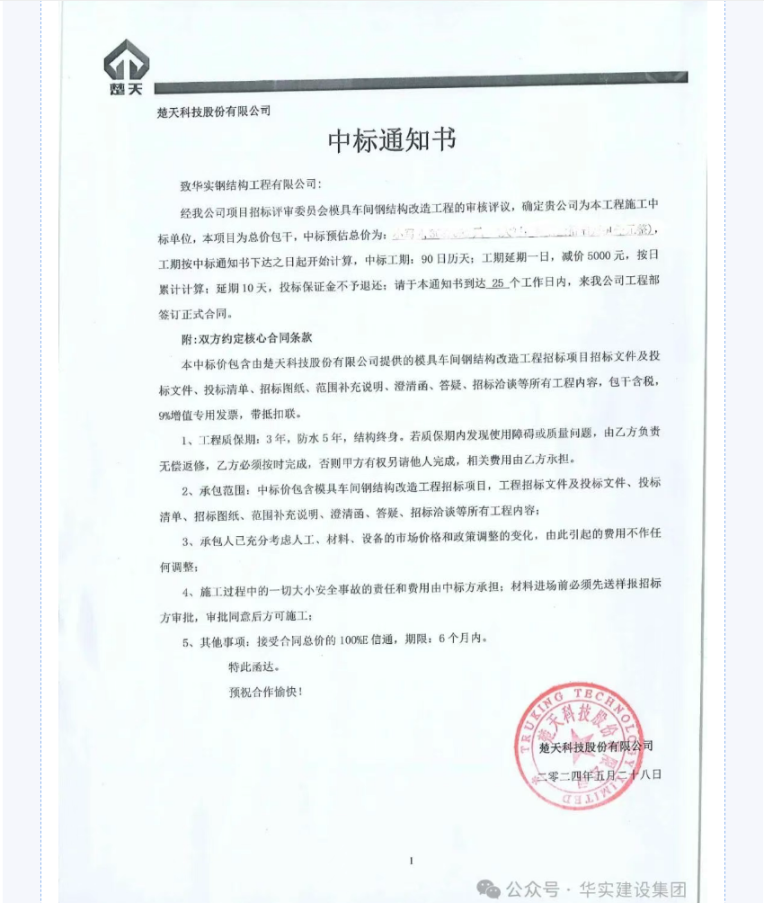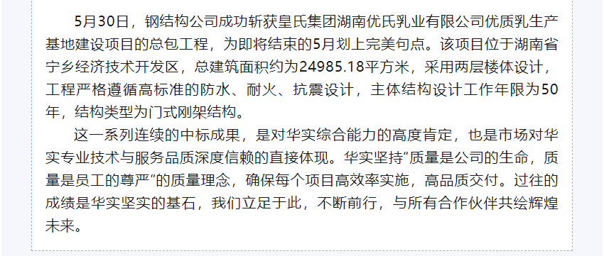捷報頻傳!華實建設集團鋼結構公司兩周連中四標